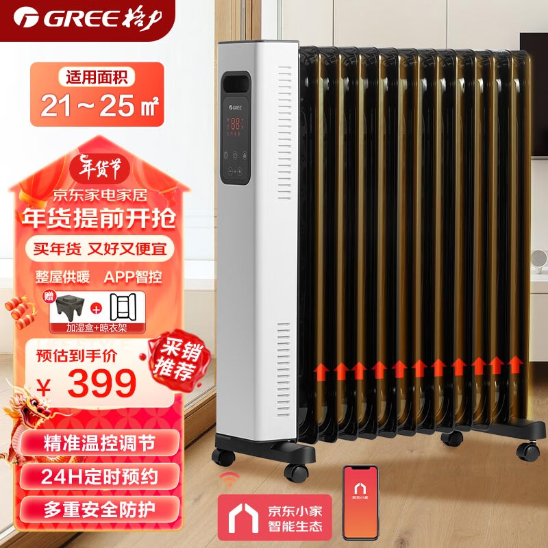 格力(GREE)【智能13片】取暖器家用电暖器/3片油汀电暖气京东小家智能生态加湿取暖电器 NDY22-J6022B价格:476.00元!