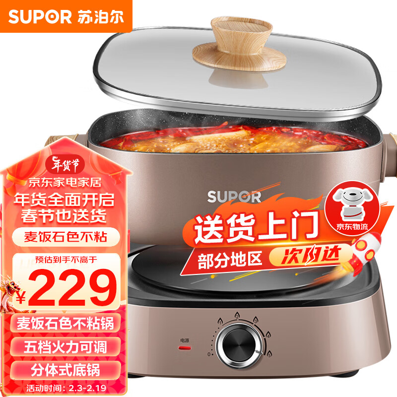 苏泊尔(SUPOR)电火锅 电煮锅电炒锅火锅专用锅涮肉分体式火锅锅家用多功能电锅电热锅5L多用途锅H2727FK622价格:229.00元!