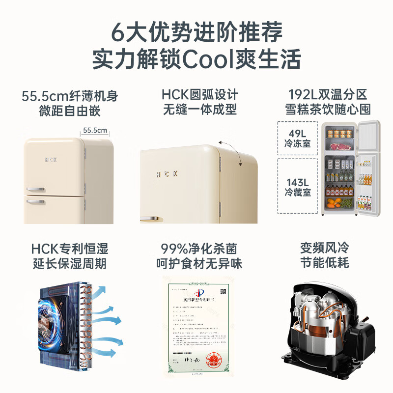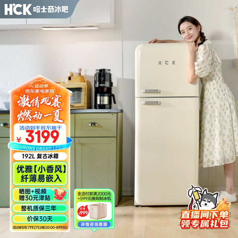哈士奇客厅冰箱变频节能复古双门风冷无霜家用纤薄冷藏冷冻双温冰箱客厅小香风 192升 BC-192RS奶茶色价格:2999.00元!