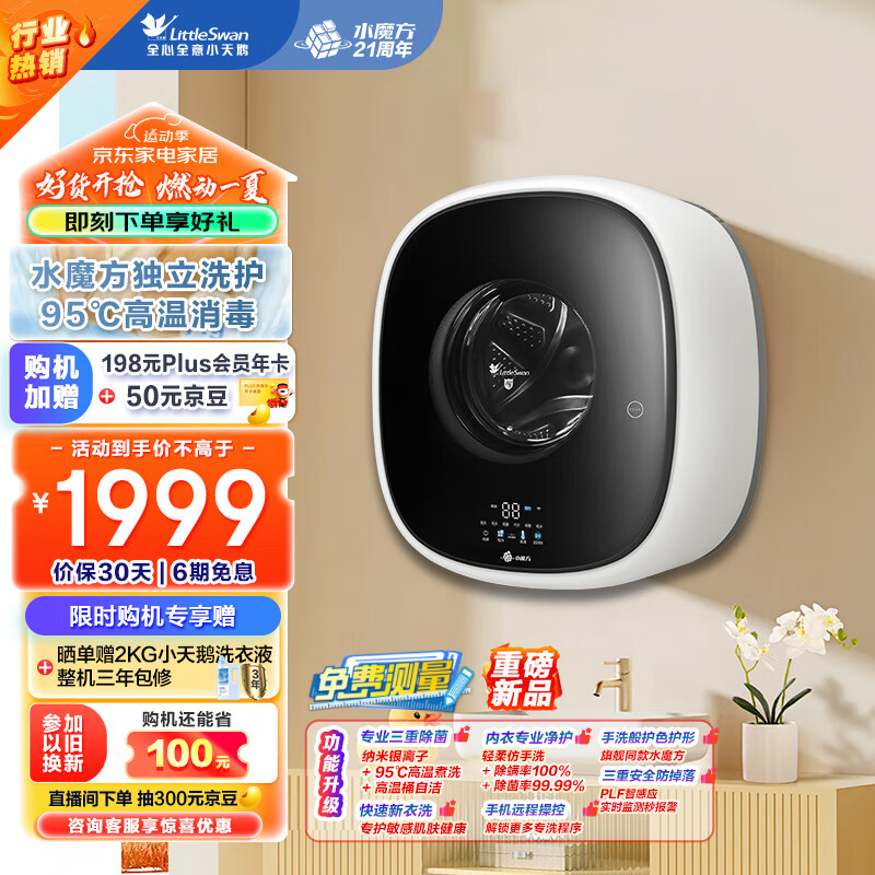 小天鹅(LittleSwan)内衣洗衣机全自动家用 婴儿洗衣机小型迷你 壁挂洗衣机 3公斤 水魔方 除菌 TG30V860EPLUS价格:1999.00元!