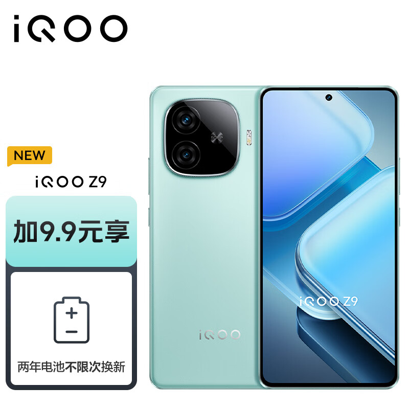 vivo【两年电池换新套装】iQOO Z9 8GB+256GB 山野青 6000mAh 超薄蓝海电池144Hz防频闪护眼屏电竞手机价格:1608.90元!