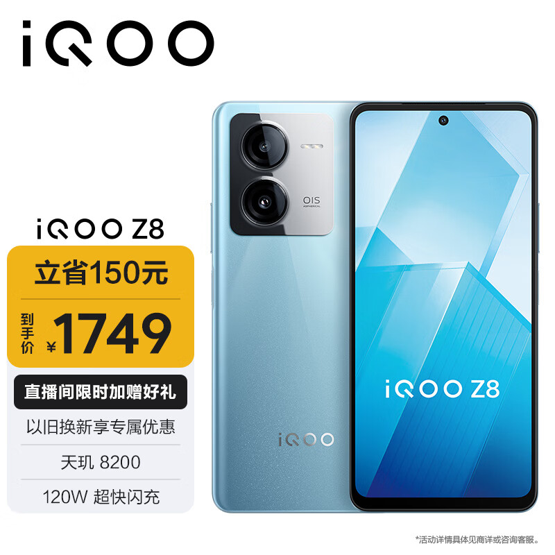 vivo iQOO Z8 12GB+512GB 星野青 天玑 8200 120W超快闪充 5000mAh超长续航 5G电竞手机价格:1899.00元!