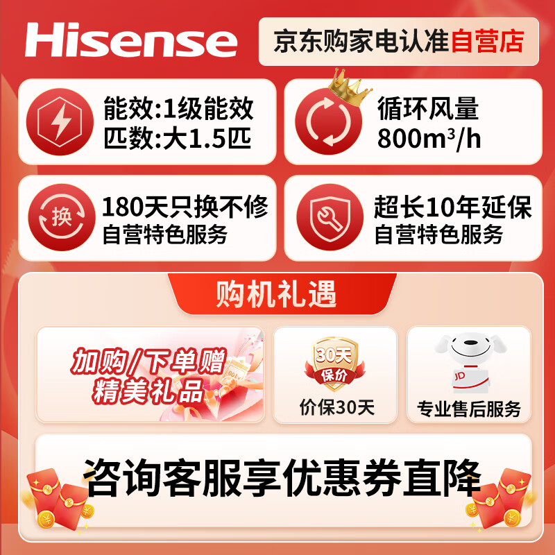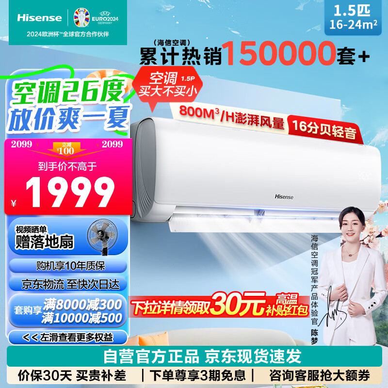 海信(Hisense)空调1.5匹挂机变频大风量速冷暖WIFI智能壁挂式卧室空调新一级能效KFR-35GW/E291-X1以旧换新价格:2099.00元!