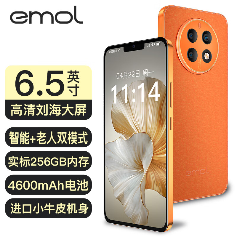 EMOL E903 256G 全新超薄高清八核安卓智能手机学生便宜大屏百元机老人老年备用机游戏电竞 霞光橙价格:439.00元!