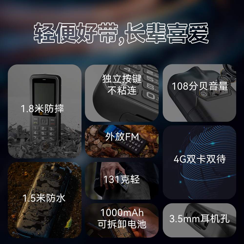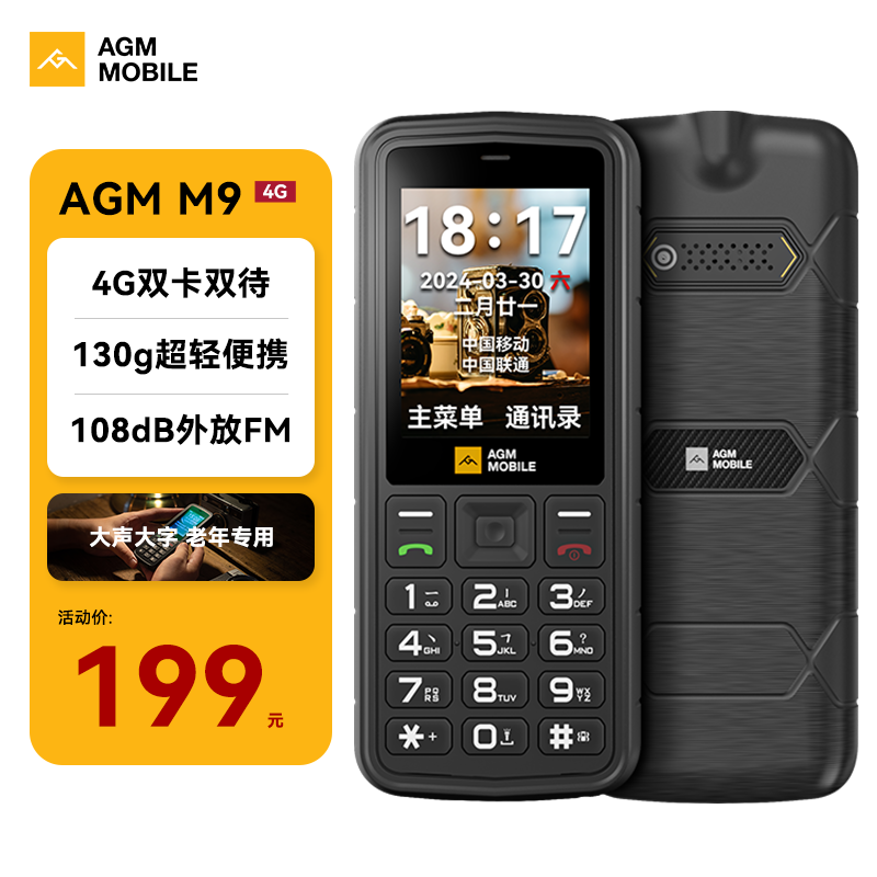 AGM M9三防老年手机 4G通移动联通电信老人手机超大声音防摔耐用轻便老人机价格:199.00元!