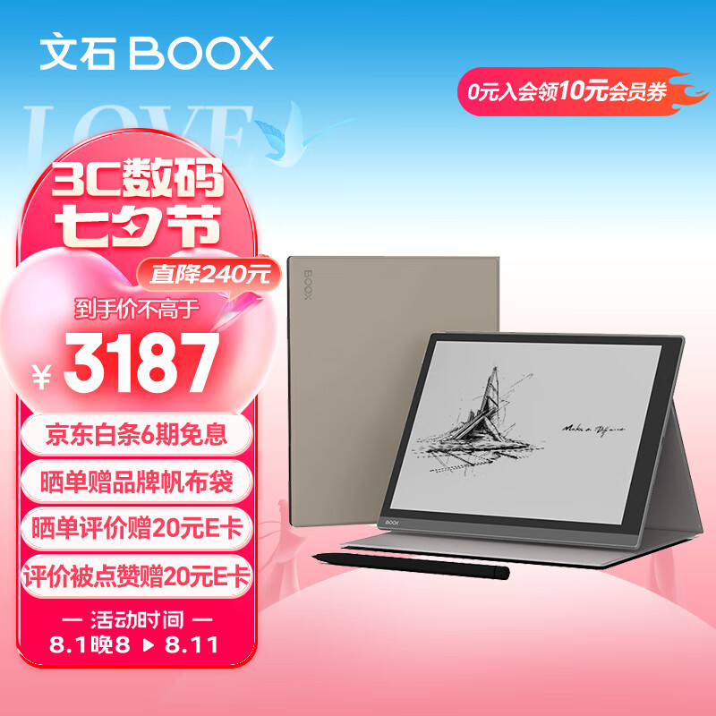 BOOX文石 NoteX3 Pro 10.3英寸电子书阅读器 墨水屏电纸书电子纸 智能办公本 咖啡色磁吸皮套套装价格:3187.00元!