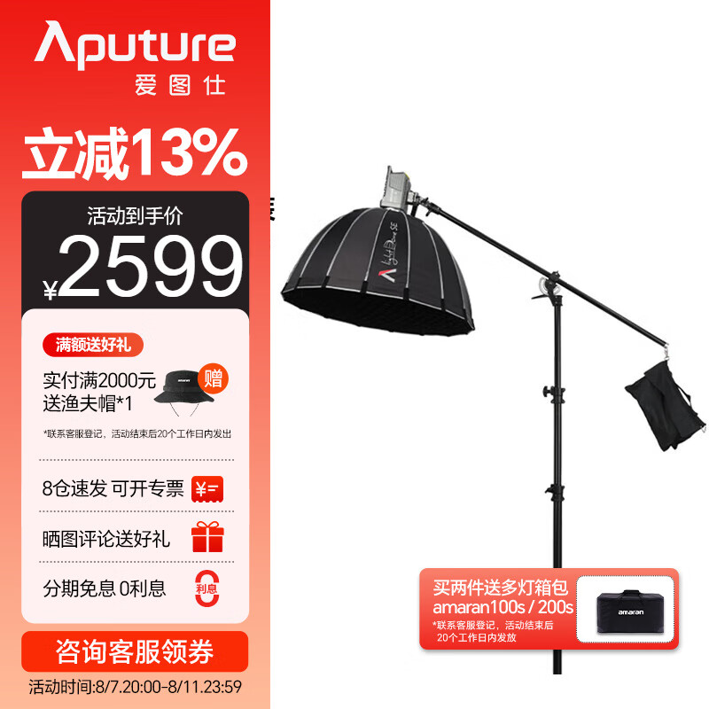 爱图仕(Aputure)艾蒙拉 200d S直播补光灯LED摄影灯电商带货服装美食绿幕直播设备全套 200dS SE深抛两用灯架套装价格:2998.00元!