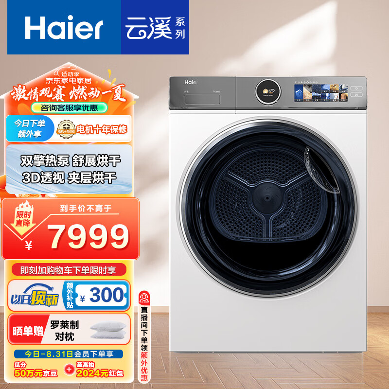 海尔(Haier)云溪386W 10KG变频双擎热泵式烘干机家用烘衣机干衣机 超薄嵌入 HGY100-F386WU1 以旧换新价格:7999.00元!