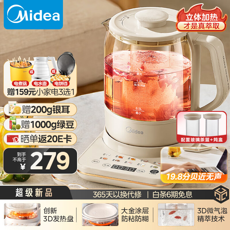 美的(Midea)精萃微气泡 1.7L大容量全自动养生壶360°加热煮茶壶轻音烧水壶花茶壶恒温煮茶器电热水壶YS17P303价格:279.00元!