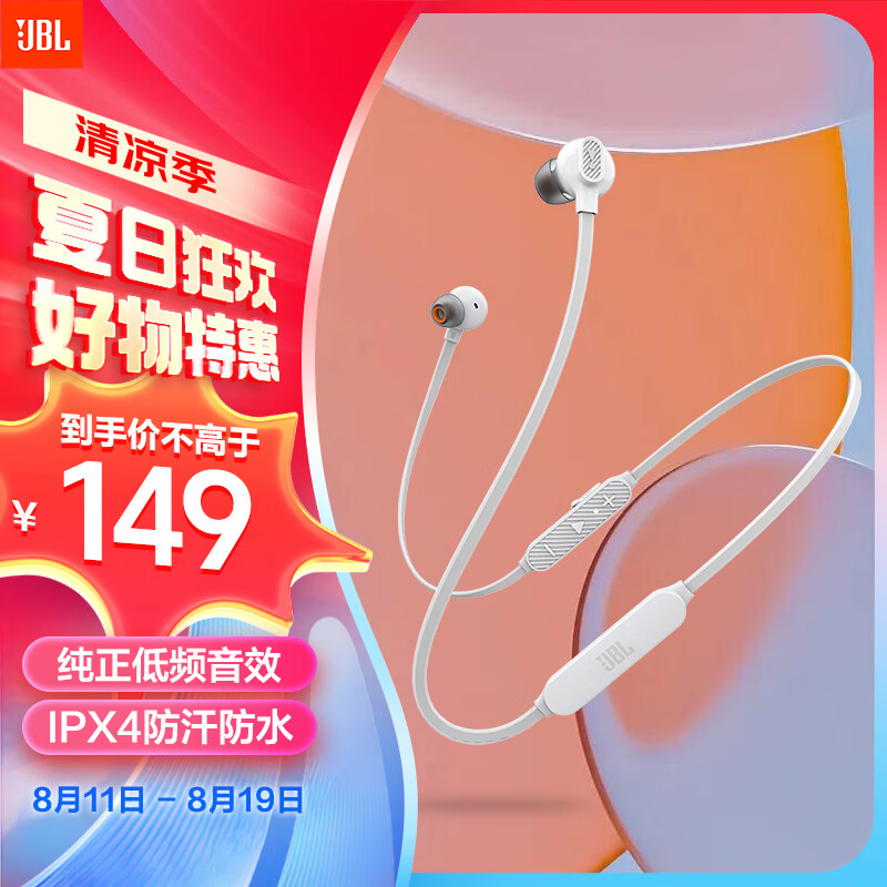 JBL C135BT 无线蓝牙耳机 入耳式带麦通话 跑步运动颈挂式磁吸收纳 通用苹果安卓手机 优雅白价格:149.00元!