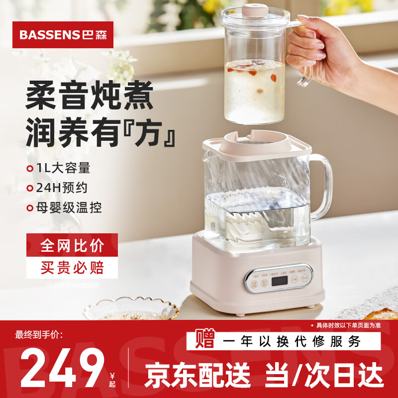 BASSENS巴森小方炖全玻璃养生壶办公室煮茶壶电炖杯恒温壶大容量养生烧水壶花茶壶电热水壶BS-D1PLUS-DZHS价格:249.00元!