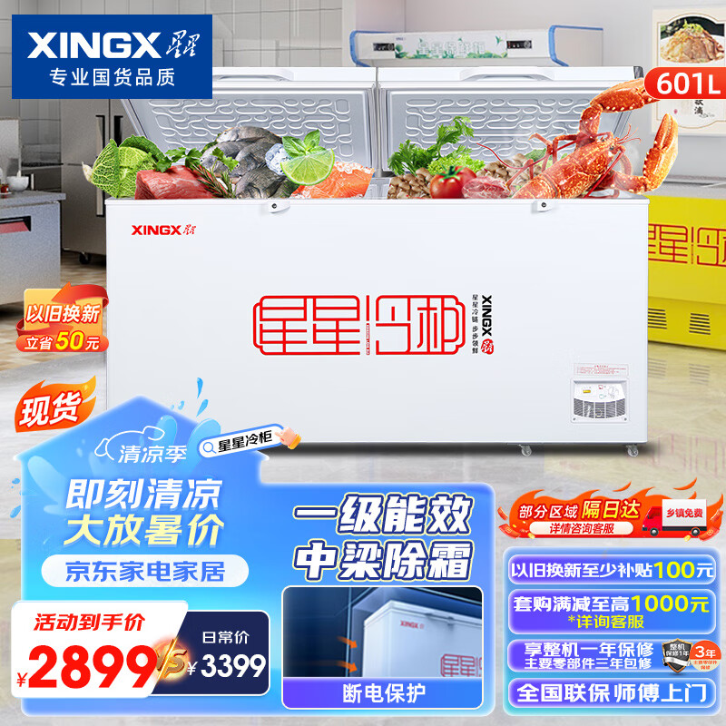 星星(XINGX) 601升 大型冰柜 商用节能冰柜 冷藏冷冻转换柜 大容量冷柜 顶开门 商用大柜 BD/BC-628GE价格:2899.00元!