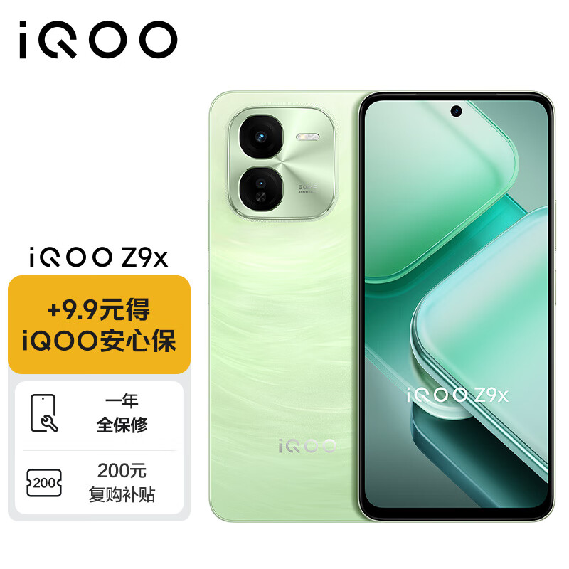 vivo【全保维修套装】iQOO Z9x 12G+256GB 风羽青 6000mAh 超薄大电池 4nm 代骁龙6 电竞手机价格:1508.90元!