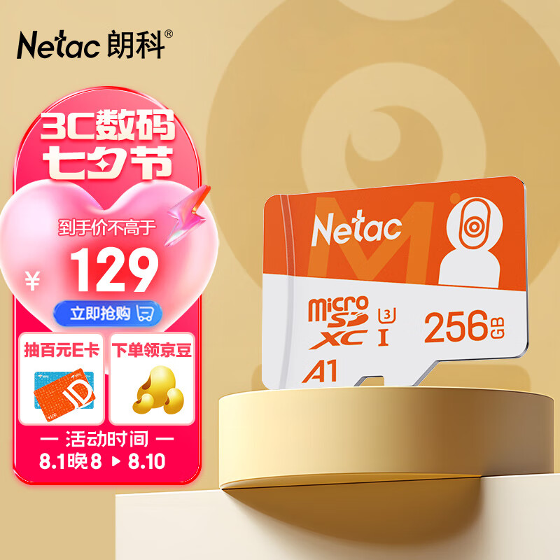朗科(Netac)256GB TF(MicroSD)存储卡 A1 U3 4K 小米监控摄像头专用卡&行车记录仪内存卡 专业监控pro版价格:129.00元!