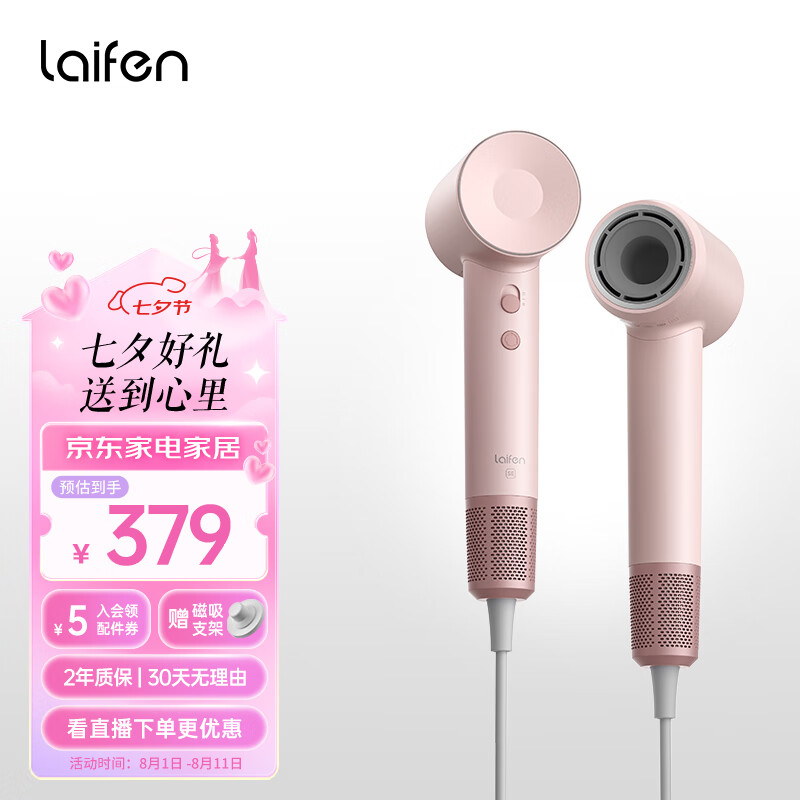徕芬Laifen SE 家用吹风机 大功率速干电吹风 莱芬负离子大风力不伤发风筒 男士女士七夕情人节礼物 SE浅粉色(赠磁吸支架)价格:429.00元!