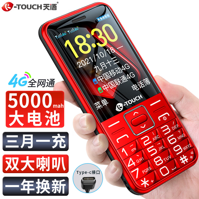 天语(K-Touch)S9 4G通老人手机 移动联通电信广电 超长待机 大声音学生备用功能老年手机 红色价格:239.00元!