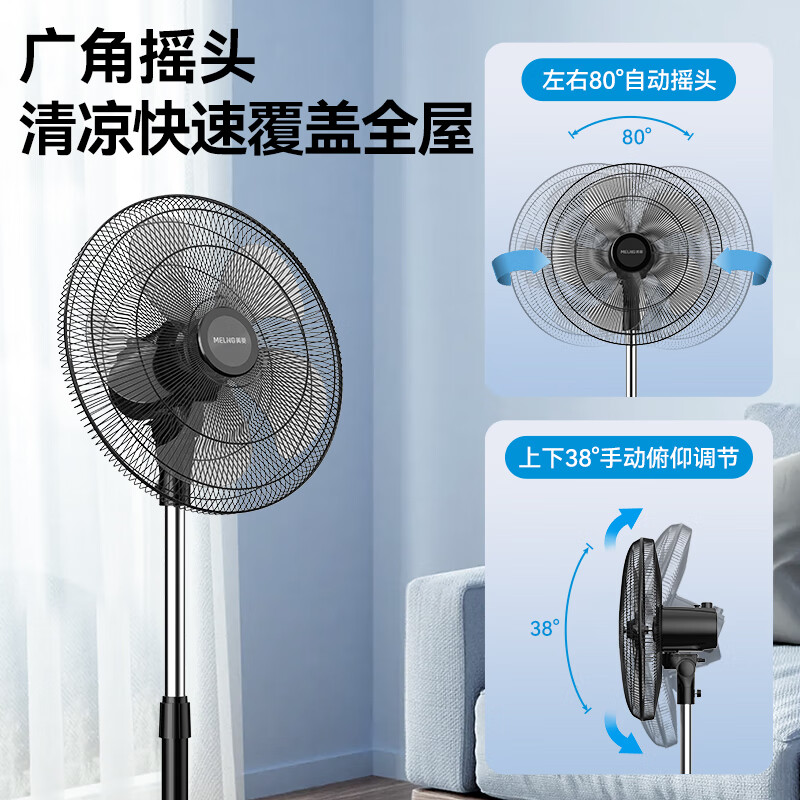 美菱MELNG 电风扇/风扇落地式轻音节能落地扇家用/商用/办公室/工业风扇 五叶摇头大风量电扇MPF-DL015价格:139.00元!