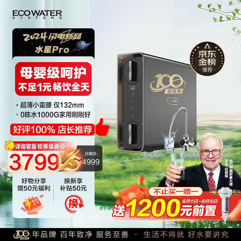 怡口净水(ECOWATER)净水器家用厨下式母婴直饮0陈水陶氏长效反渗透RO膜TDS智显1000G大流量水星Pro纤薄ERO185-2价格:4599.00元!