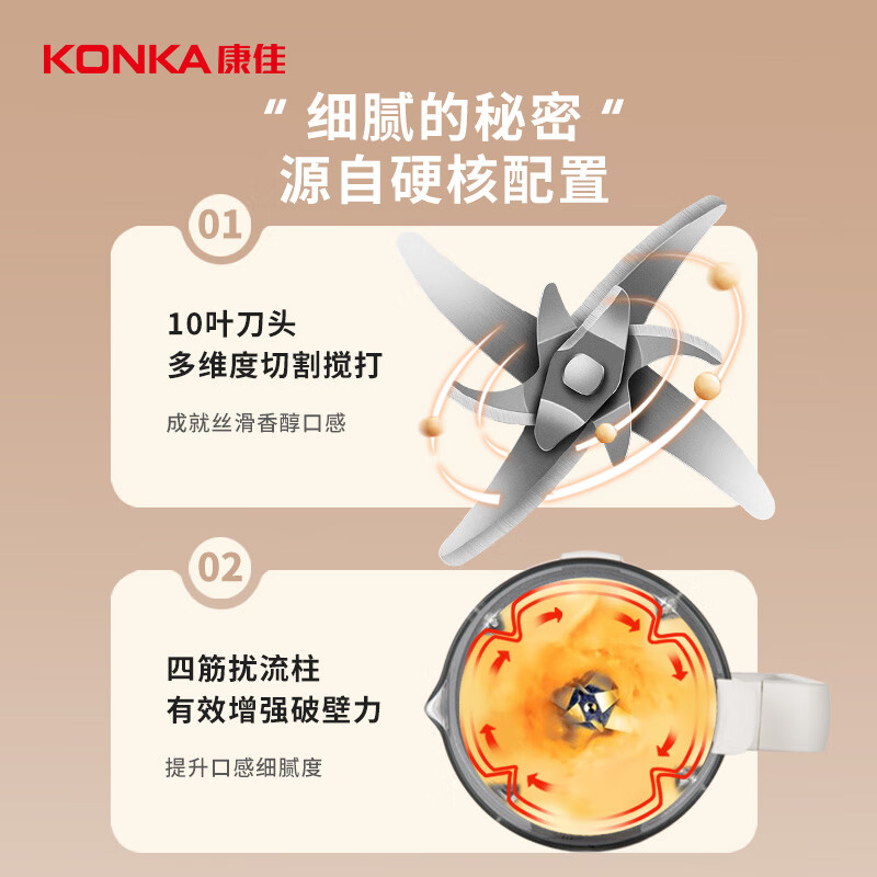 康佳(KONKA)破壁机 家用迷你豆浆机全自动多功能加热免滤打米糊辅食机小型料理机榨汁机果汁机 KPBJ-1549E-W价格:139.00元!