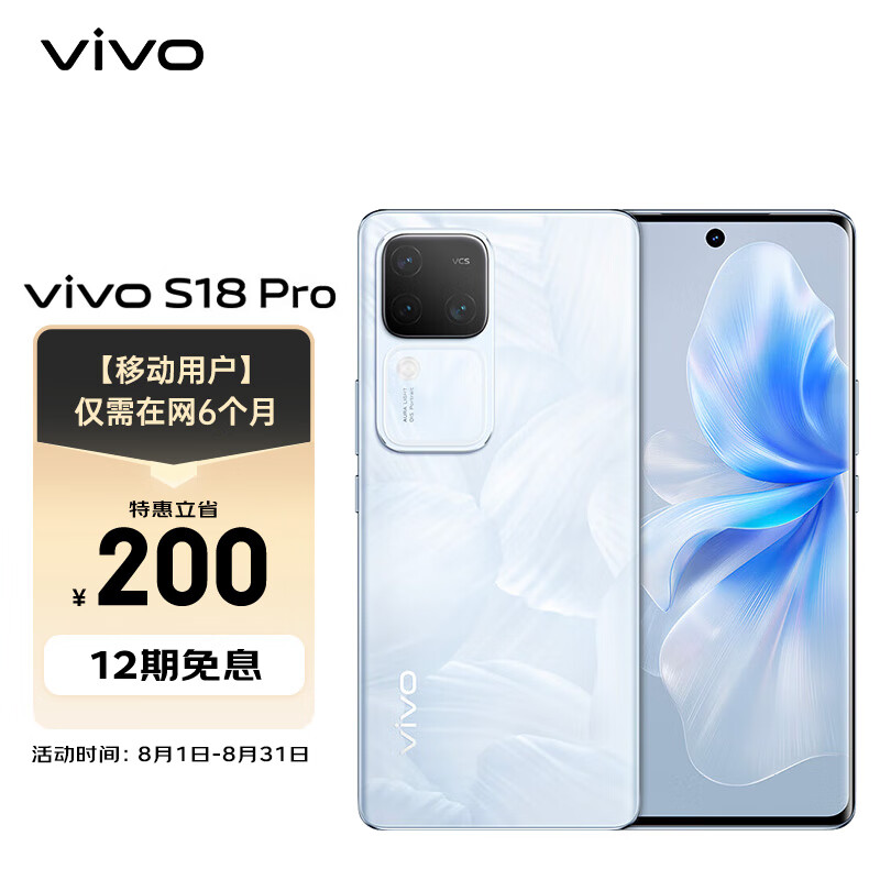 vivo S18 Pro 16GB+512GB 花似锦 天玑9200+ 后置影棚级柔光环 5000mAh 5G通 【移动用户惠享】价格:3599.00元!