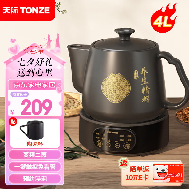 天际(TONZE)煎药壶 中药壶中药锅 陶瓷智能全自动分体式熬药罐 4L大容量家用养生陶瓷药膳壶 BJHD23B40FAW价格:209.00元!