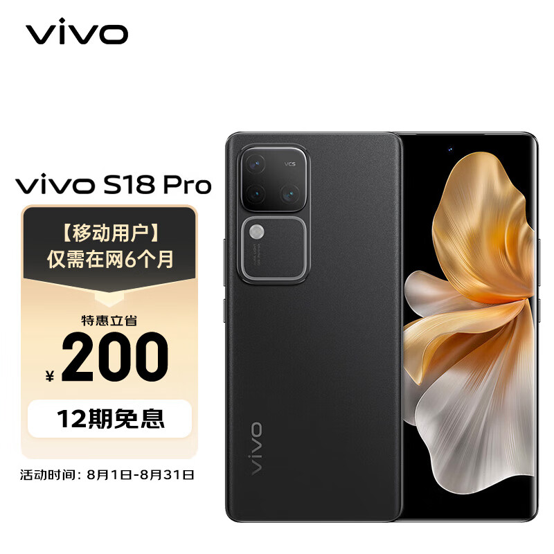 vivo S18 Pro 12GB+256GB 玄黑 天玑9200+ 后置影棚级柔光环 5000mAh电池 5G通 【移动用户惠享】价格:2899.00元!