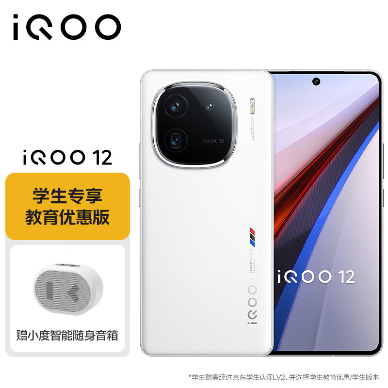 vivo【教育优惠-学生专享价】iQOO 12 16GB+1TB传奇版 第三代骁龙 8 自研电竞芯片Q1 5G手机价格:4489.00元!