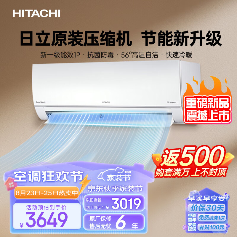 日立(HITACHI)白熊君升级日立原装压缩机新1级能效1匹变频空调挂机节能低噪卧室空调以旧换新RAK/C-DE09PHCPC价格:3799.00元!