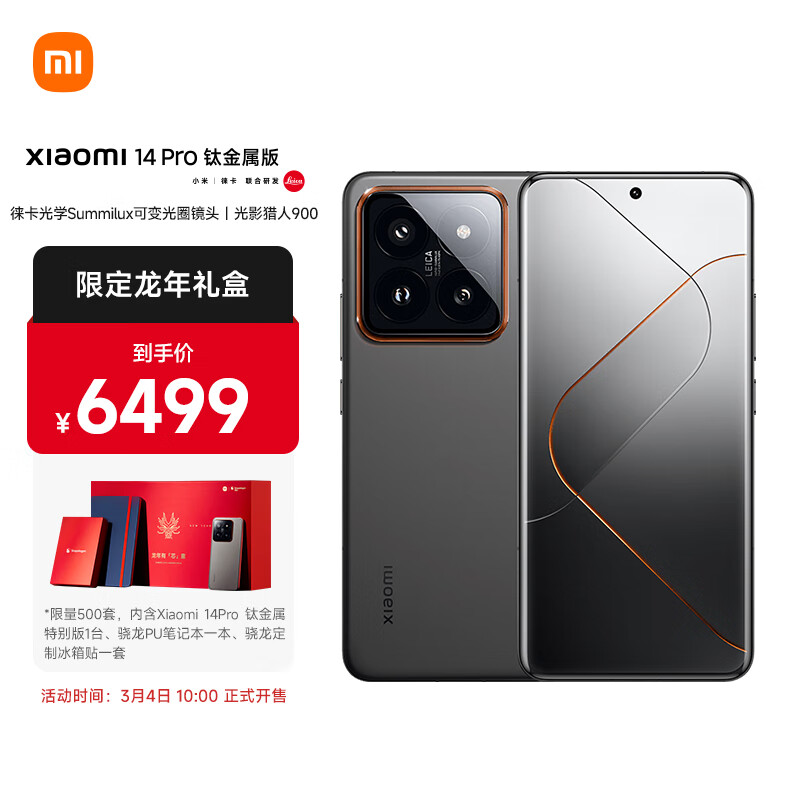 小米(MI)14Pro 徕卡可变光圈镜头 光影猎人900 澎湃OS 16+1T 钛合金礼盒版 5G AI手机 小米汽车互联价格:6499.00元!