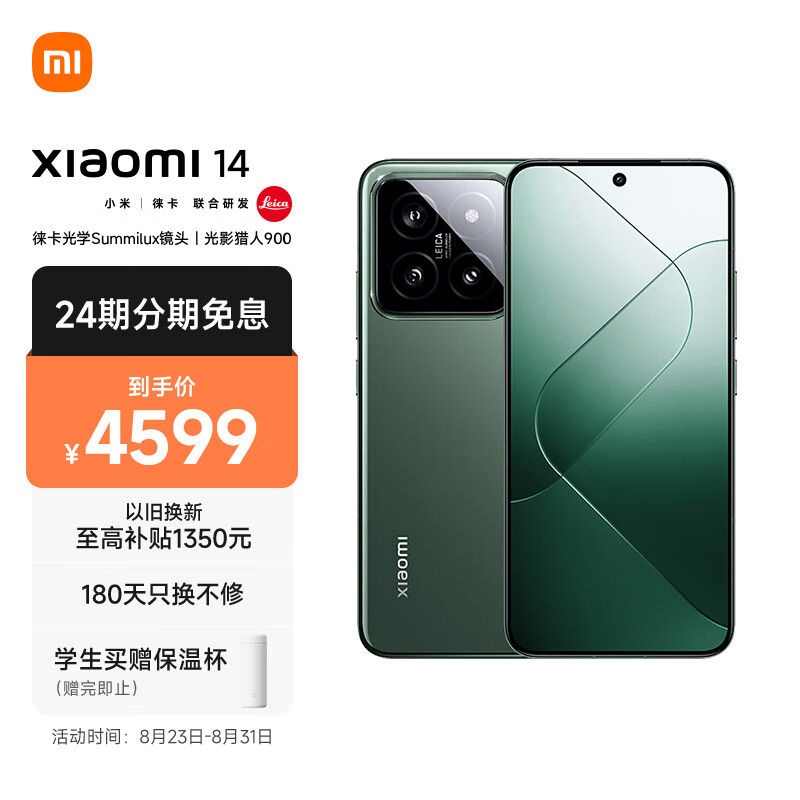 小米小米14 徕卡光学镜头 光影猎人900 徕卡75mm浮动长焦 第三代骁龙8 16+1T 岩石青 5G手机价格:4599.00元!