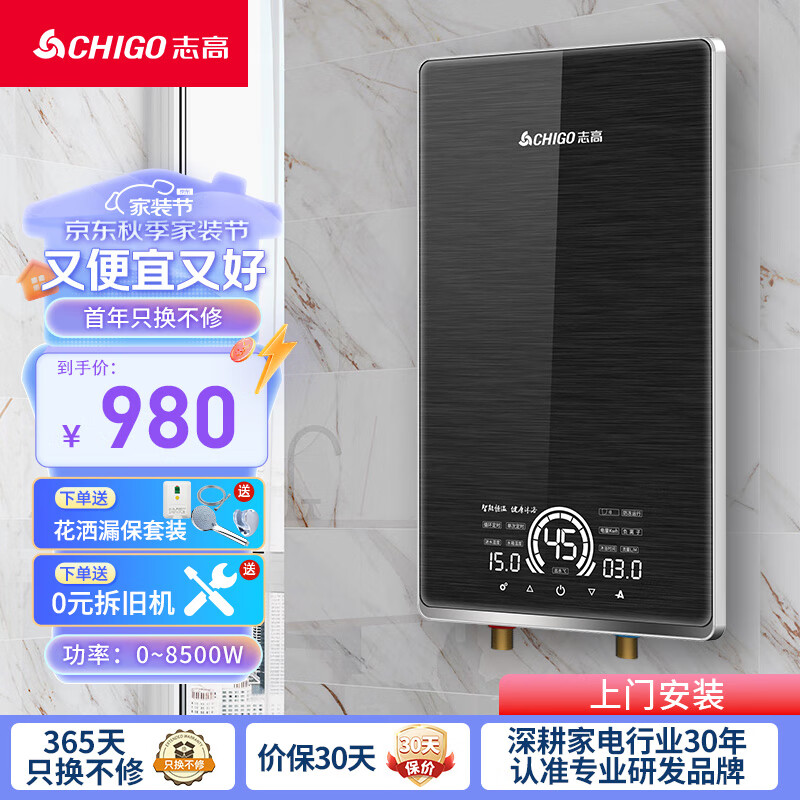 志高(CHIGO)即热式电热水器超薄8500W智能变频恒温速热小厨宝省电家用出租屋洗澡免储水功率可调ZG-KB812价格:1480.00元!