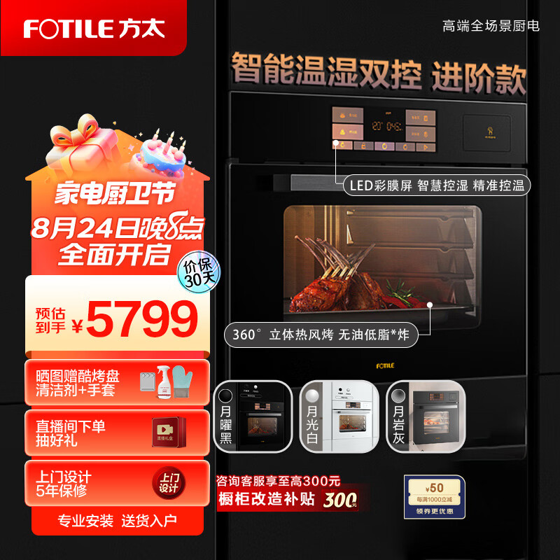 方太(FOTILE)彩膜屏款蒸烤箱一体机 嵌入式家用智能蒸烤炖炸四合一手机智控脱脂炸55L大容量蒸箱烤箱ZK50-EF1.i价格:5799.00元!