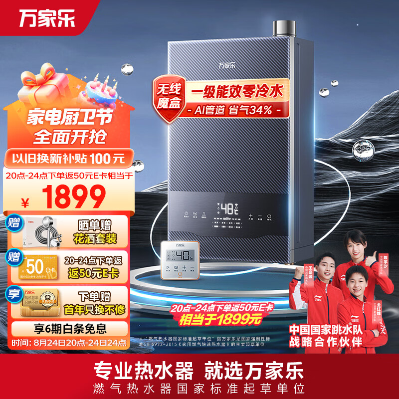 万家乐16升冷凝式增压零冷水燃气热水器恒温1级能效天然气智控以旧换新JSLQ27-16RL7A【升级水气双伺服】价格:1999.00元!