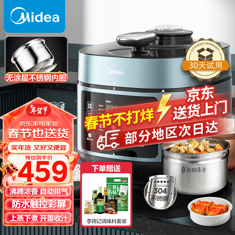 美的(Midea)浓香系列 全自动智能家用5L电锅0涂内胆自动排气上蒸下煮易清洁高压电饭煲MY-C552N(2-10人食)价格:509.00元!