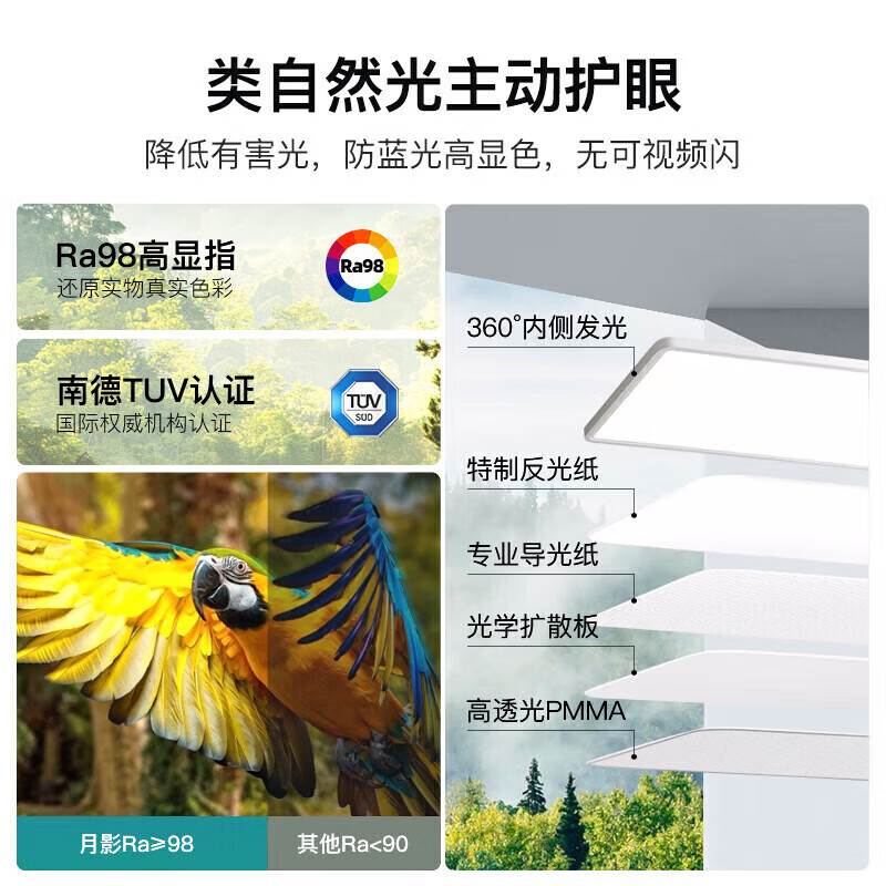 说实话这款月影MXDD03C-036挺好的,这款灯灯光柔和不刺眼,贴顶没有缝隙很好看,希望耐用吧!也是从网上被种草了这款,装好了目前看还是挺好的,性价比不错,这种类型的灯里不算贵的