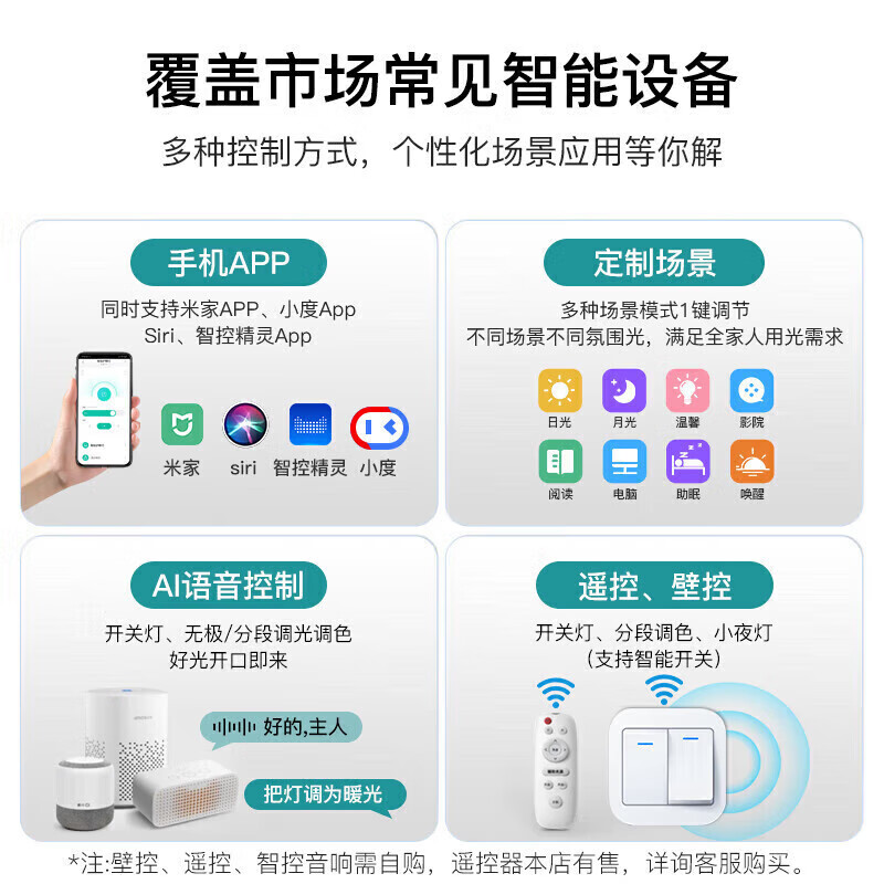 操控方式:智能控制,开关式,声音控制,遥控器控制
