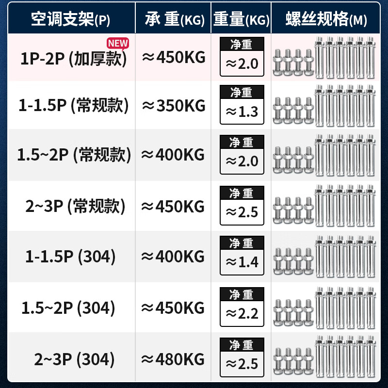 思博润空调支架配置参数: