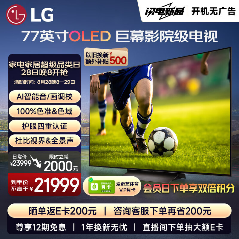 LGC4系列 77英寸 OLED77C4PCA 4K超高清 巨幕影院级电视 120HZ高刷 杜比视界&全景声价格:20999.00元!