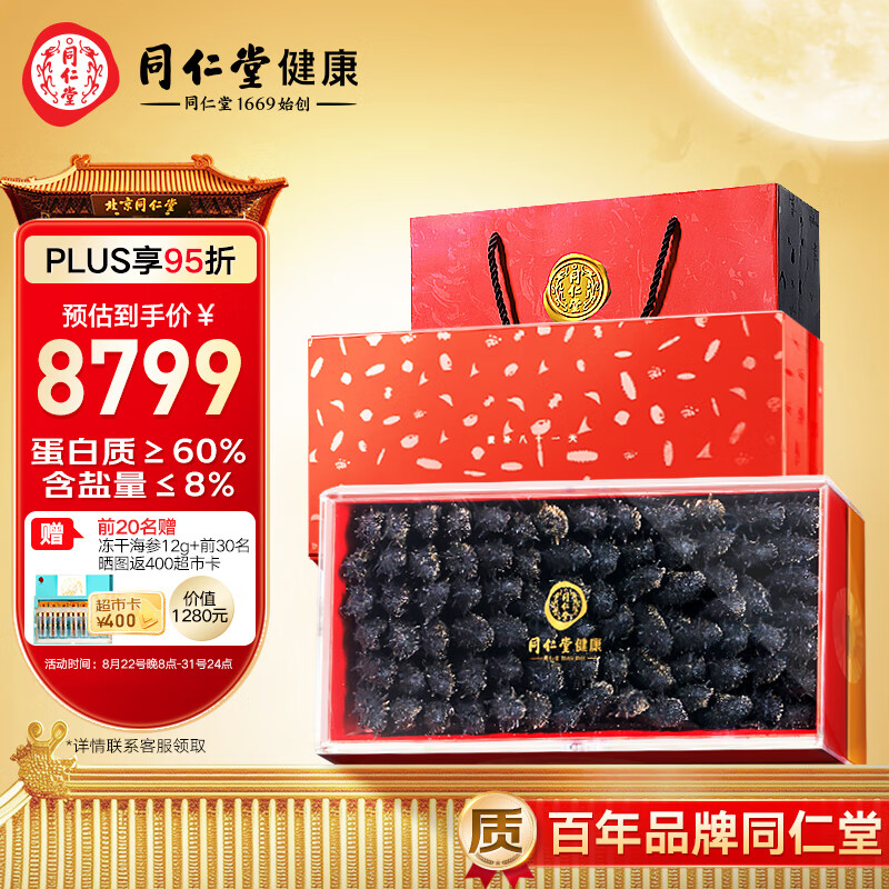 同仁堂(TRT)北京同仁堂大连淡干海参辽参净制380g约79-81只海参中秋礼品价格:8799.00元!