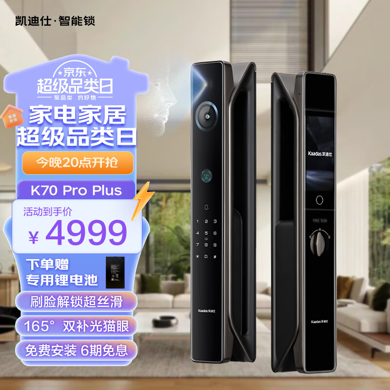 凯迪仕(kaadas)智能锁指纹锁 可视猫眼大屏人脸识别智能门锁 K70 Pro Plus价格:5210.69元!
