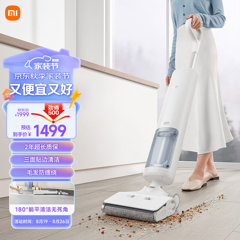 米家 小米无线履带洗地机 吸拖洗一体 家用扫拖机擦地机智能吸尘器 创新履带式滚刷 三面贴边躺平清洁价格:1499.00元!