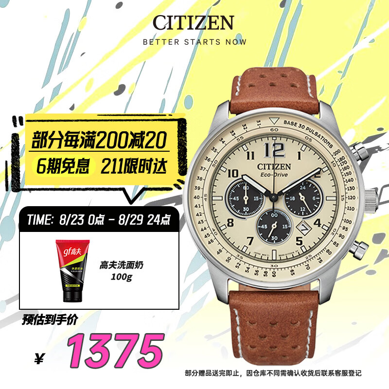 西铁城(CITIZEN)手表男日韩表FF系列光动能三眼盘皮带商务送礼物CA4500-16X价格:2500.00元!