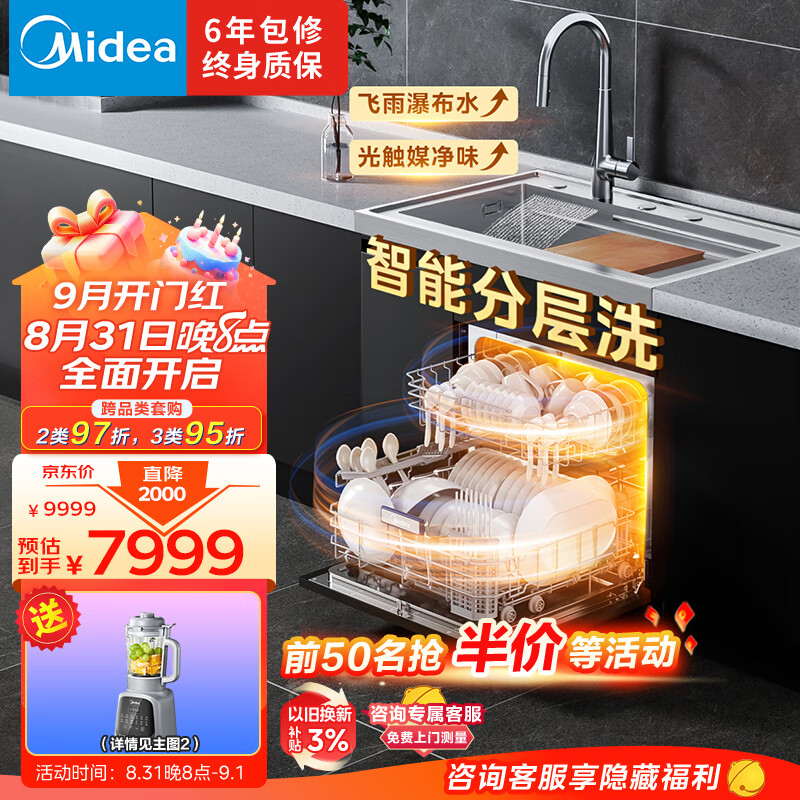 美的(Midea)集成水槽XH06P 集成水槽洗碗机一体式 洗碗机带洗菜盆一体机 集成洗碗机 水槽洗碗机分层洗价格:7999.00元!