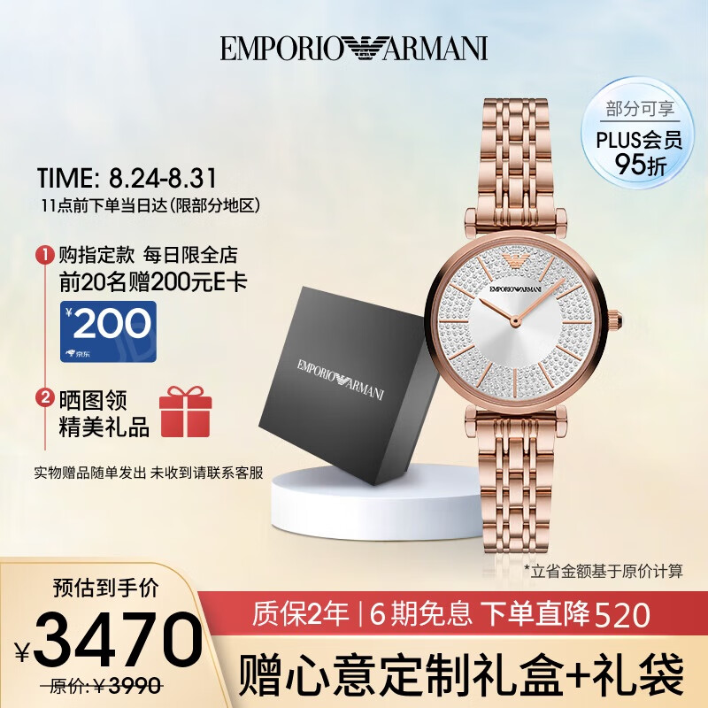安普里奥·阿玛尼(Emporio Armani)手表女士满天星镶钻表盘玫瑰金钢带女表生日礼物送女友AR11446价格:3830.00元!