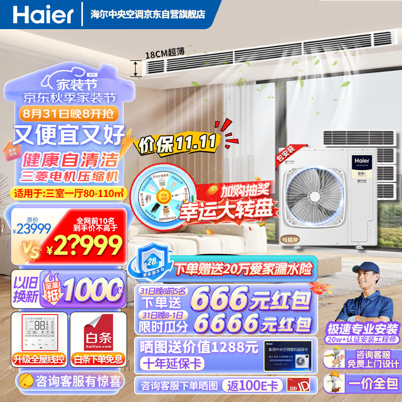 3、海尔品牌值得信赖,已经安装到位,待吊顶完成后试机,工人师傅特别负责任,点赞!