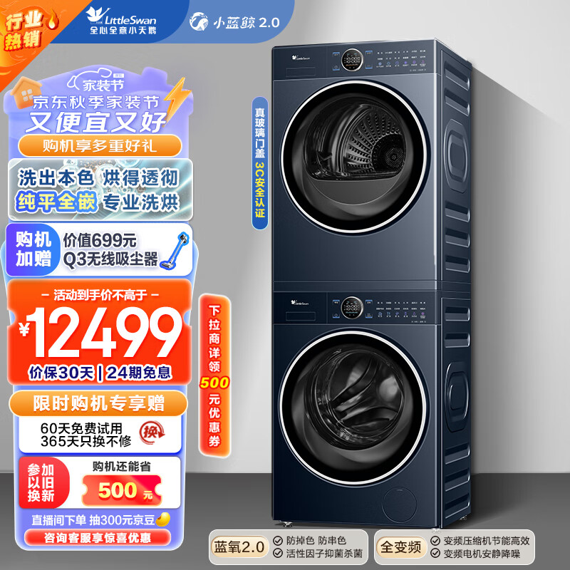 小天鹅(LittleSwan)洗烘套装 10KG滚筒洗衣机+热泵烘干机 纯平全嵌 蓝氧2.0 全变频【小蓝鲸2.0】TG100V89PRO+89PRO价格:12499.00元!