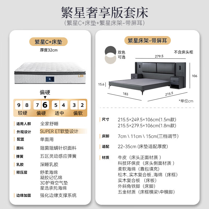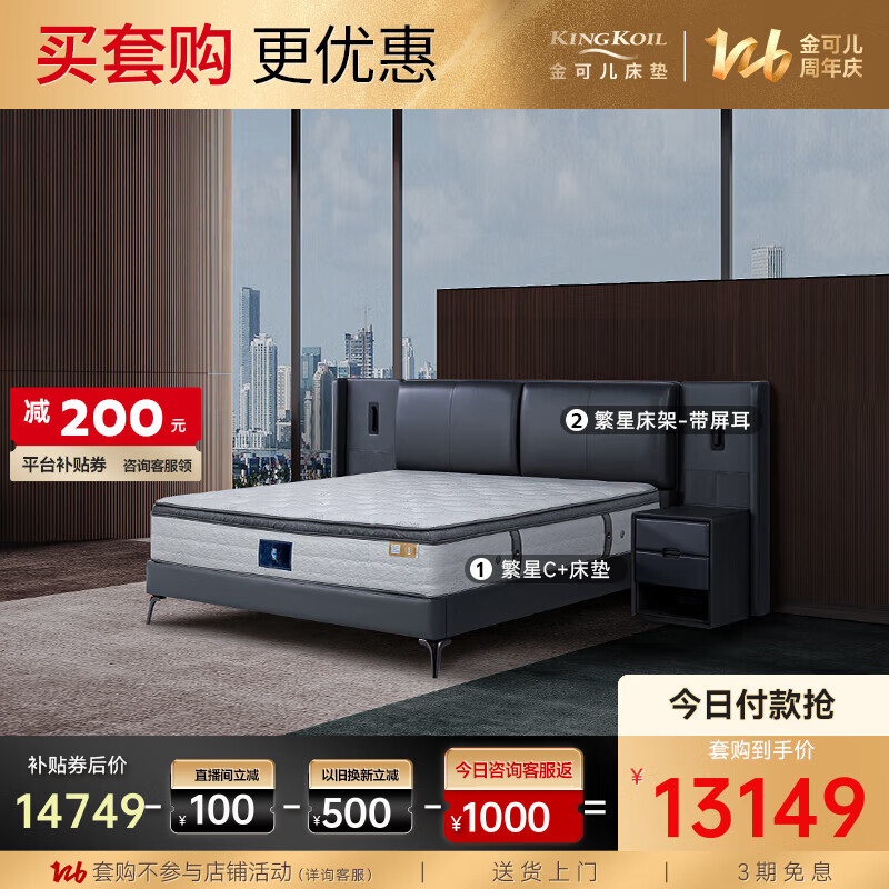 金可儿(Kingkoil)乳胶床垫五分区独立弹簧繁星C+床垫+繁星床架-带屏耳1.8米*2.0米价格:14949.00元!