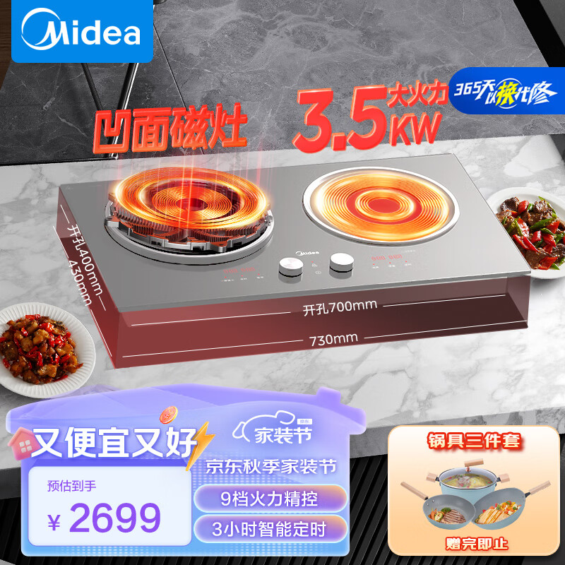 美的(Midea)电磁炉双灶 3500W家用大功率一平一凹嵌入式电陶炉不挑锅具 3H定时恒温匀火铂钻面板 MC-DZ35AT09P价格:2699.00元!