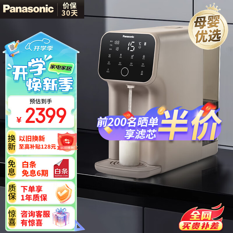 松下 Panasonic 加热净水器净饮一体机UV消毒家用直饮机台式即热式净水机RO反渗透饮水机TK-AD69T价格:2399.00元!