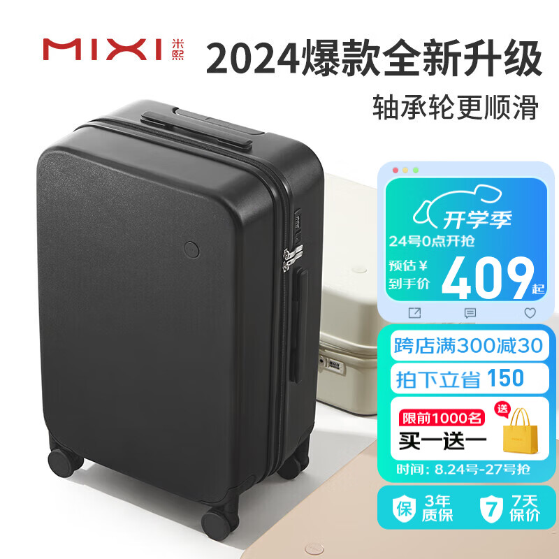 米熙高颜值拉杆箱子行李箱大容量万向轮旅行箱男密码箱女24英寸黑色价格:559.00元!